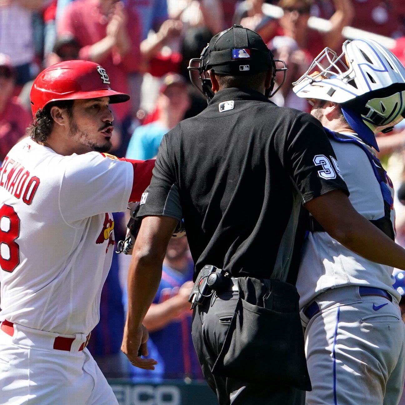 St. Louis Cardinals third baseman Nolan Arenado and pitcher Genesis Cabrera each received suspensions from Major League Baseball for their roles in the benches-clearing brawl in their 10-5 win Wednesday over the New York Mets at Busch Stadium.