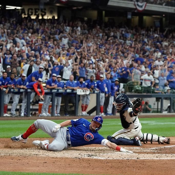 His big hit followed an eventful ninth inning that featured an inside-the-park homer from Chicago’s Seiya Suzuki and a two-out, bases-loaded walk by Milwaukee’s Christian Yelich.