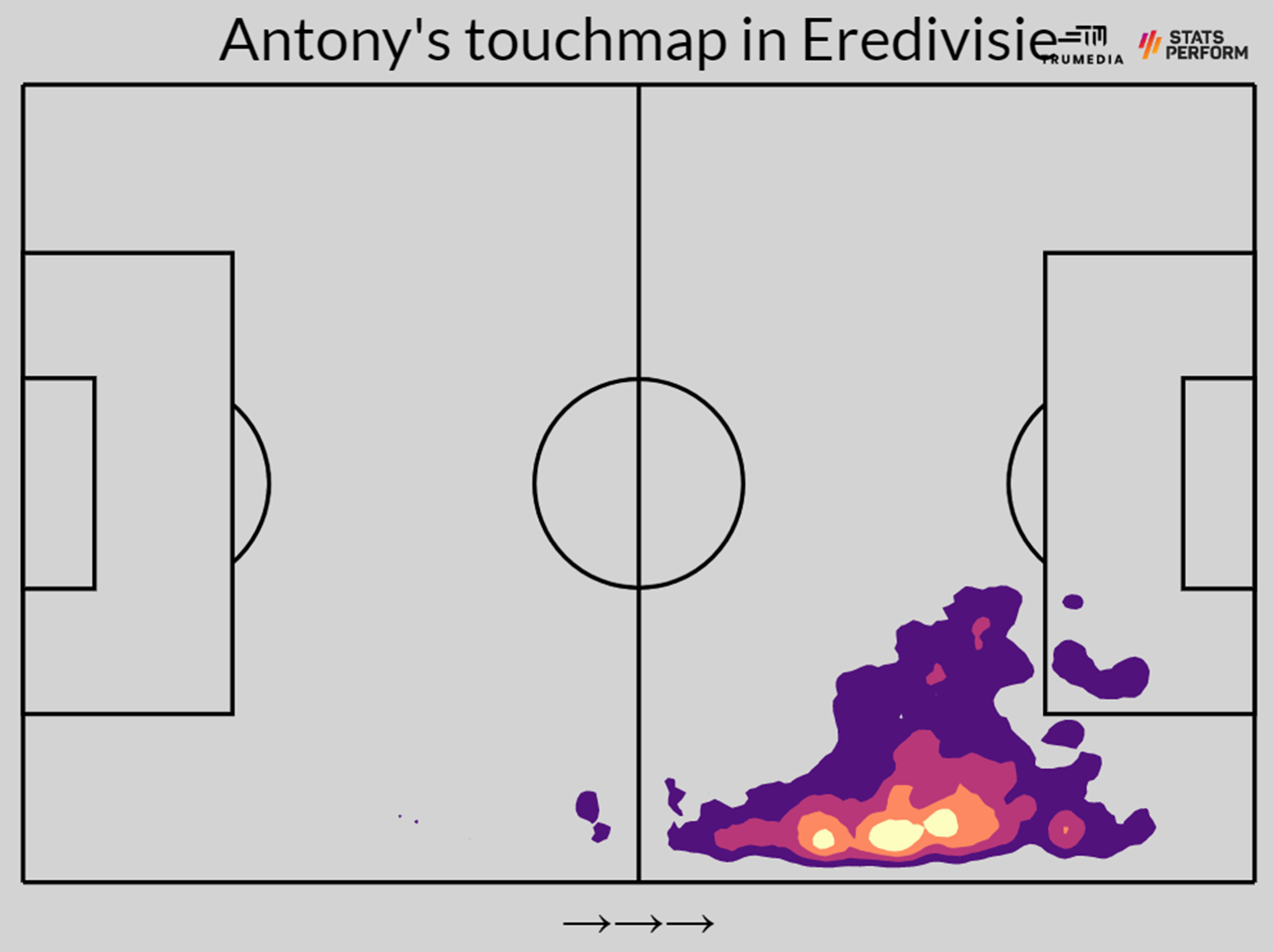 Antony had some impressive stats among his Ajax peers last season, playing 23 of the club’s 34 league games on the way to winning the league. While he did not play as many games due to an ankle injury, he was still one of the club’s top offensive leaders.