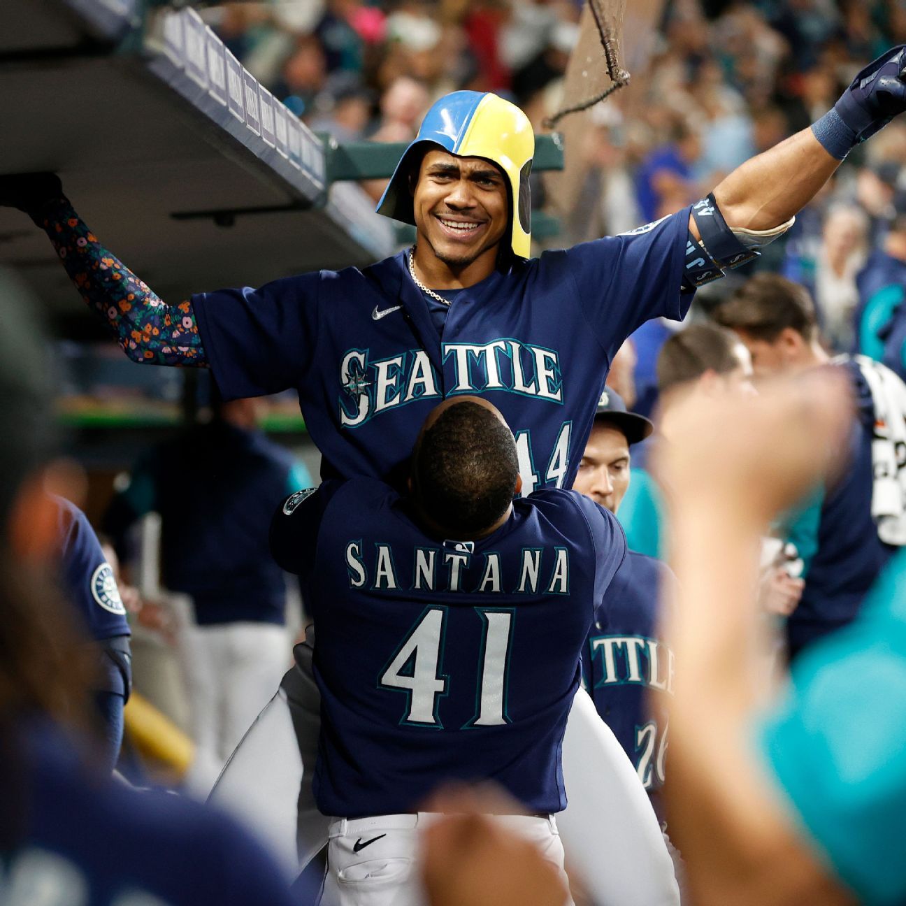 “For me one of the coolest things I’ve seen in a while is when he’s at second base after the 25th stolen base and the crowd is on its feet and they put the thing on the scoreboard, (he) flashes across his chest,” Seattle manager Scott Servais said motioning across the front of the Mariners’ jersey. “It’s about the Mariners. That’s Julio Rodríguez.”