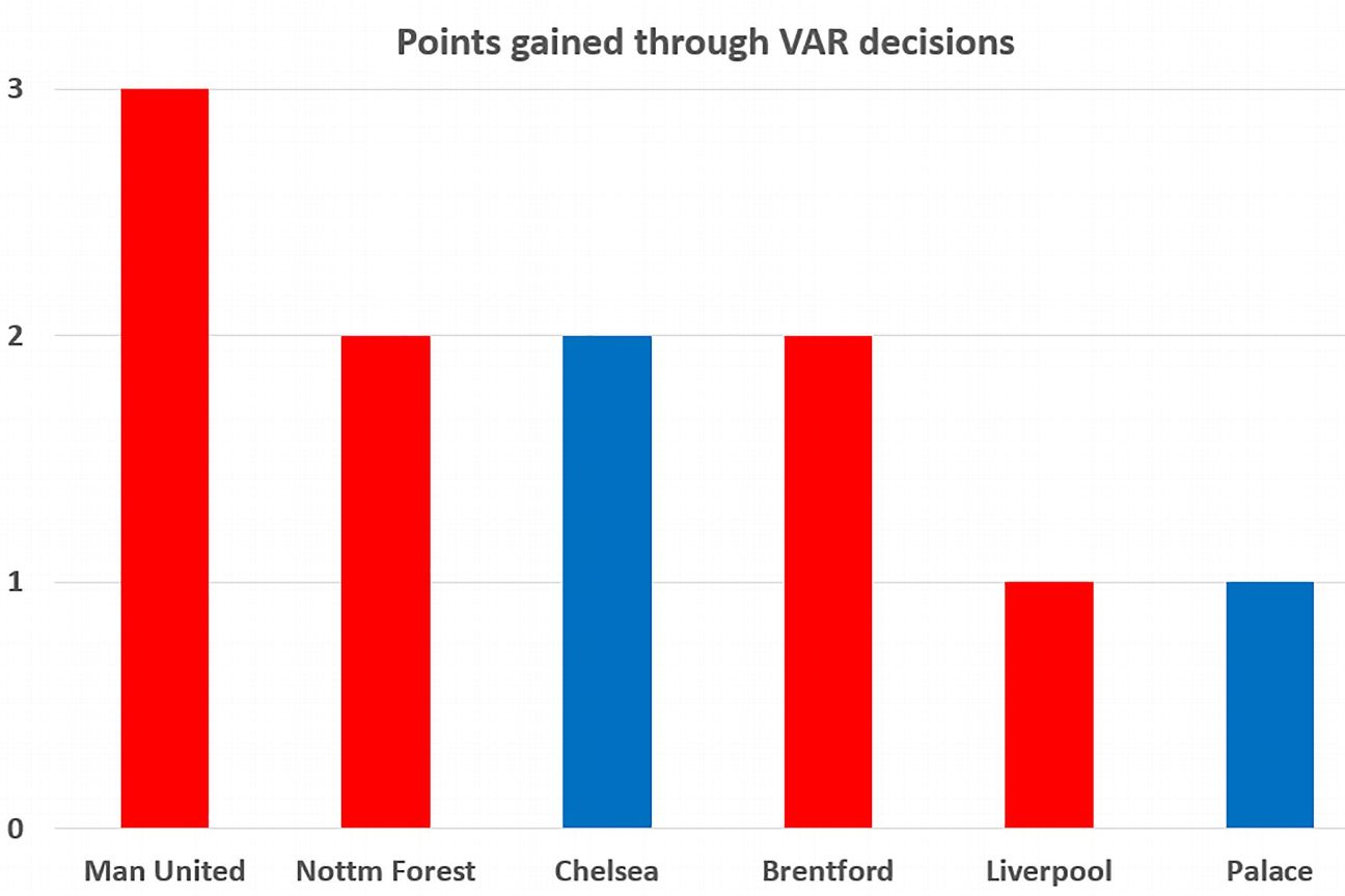 It’s a different story for Chelsea, Liverpool and Manchester United — as they slump down the table without VAR decisions in their favour.