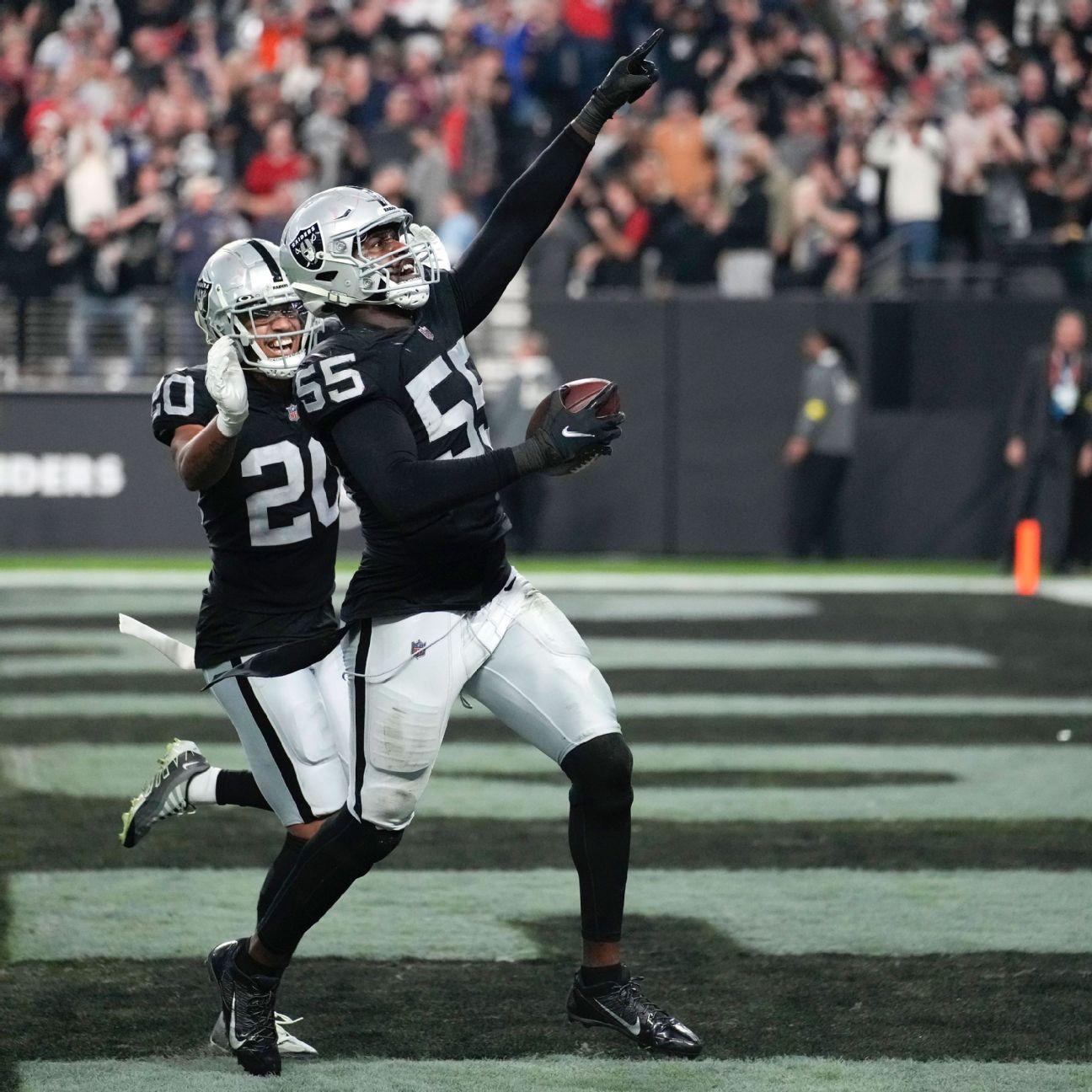 LAS VEGAS — Defensive end Chandler Jones grabbed a bizarre, unnecessary lateral by New England’s Jakobi Meyers out of the air on the final play and returned it 48 yards for a touchdown, giving the Las Vegas Raiders a 30-24 victory over the Patriots on Sunday.